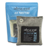 The Abscent Air Purifying Pouch is an all Natural, Eco-Friendly, Sustainable way to deal with odor. The Abscent Pouch is made with a highly porous, activated Moso Bamboo carbon. Due to its high degree of porosity, one gram of bamboo carbon has more than 32,000 sq. ft of surface (absorption) area. This allows the Abscent Pouch to capture and eliminate odor as well as allergens, bacteria and other harmful pollutants while preventing mold and mildew.